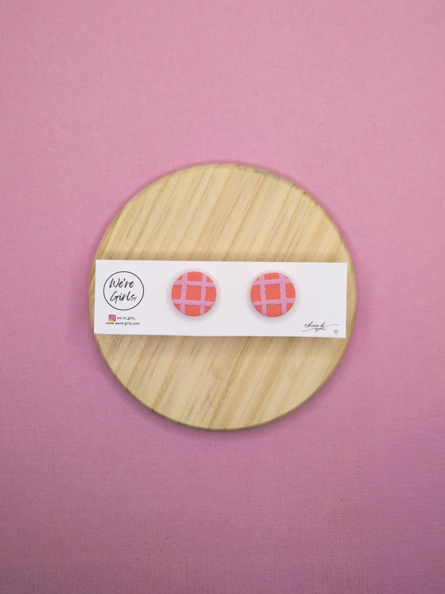 Meet these delightful round studs, splashed in a playful pink with a cheeky crisscross pattern that dances in the light, bringing a pop of fun to any outfit while wrapping you in the warm embrace of handmade charm.