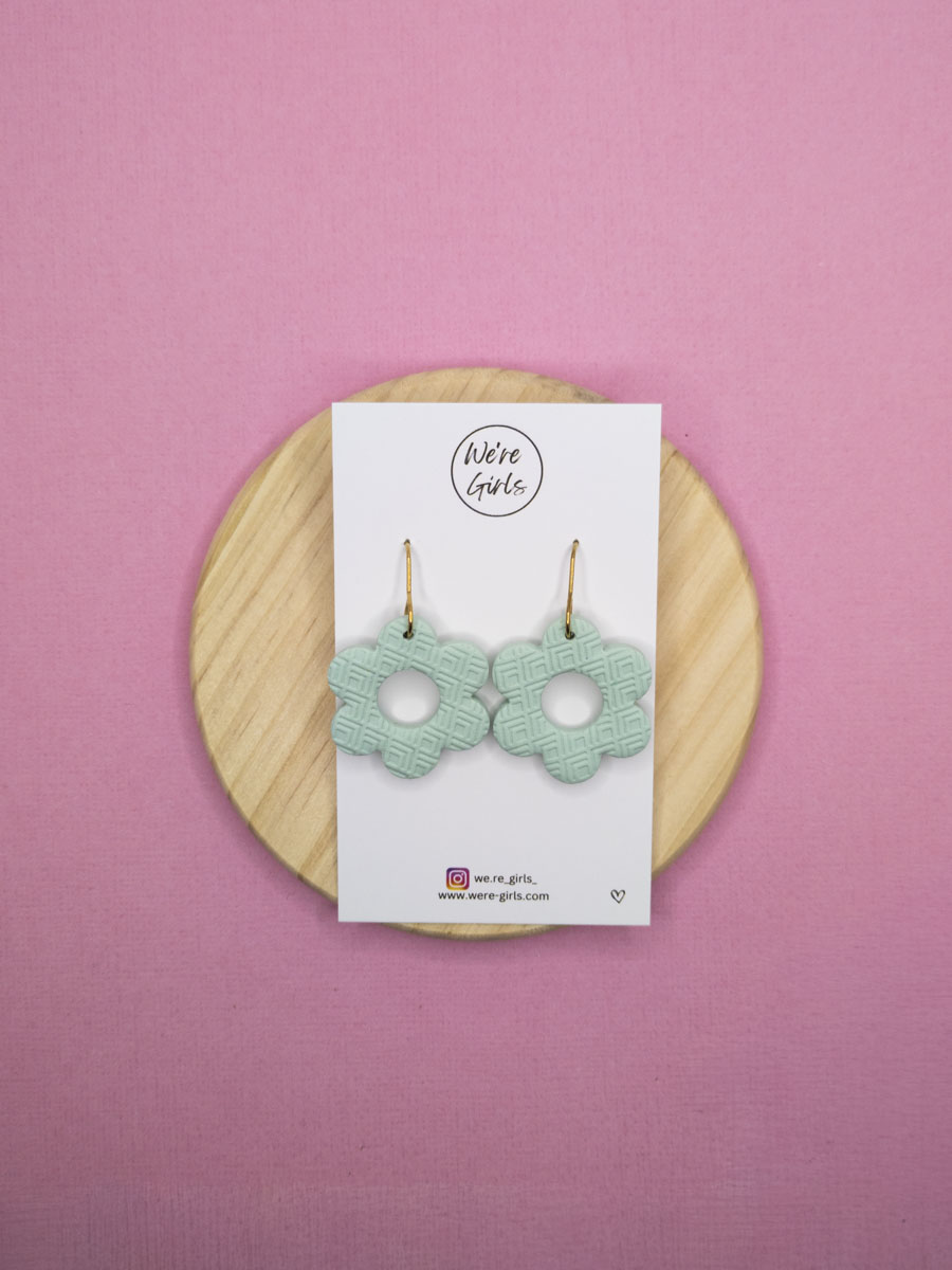 Imagine slipping on these delightful dangle earrings in a soft mint hue, playfully shaped like cheerful blossoms with textured patterns that dance in the light, adding a touch of whimsy to your everyday outfit and making you feel like the radiant, confident woman you are.