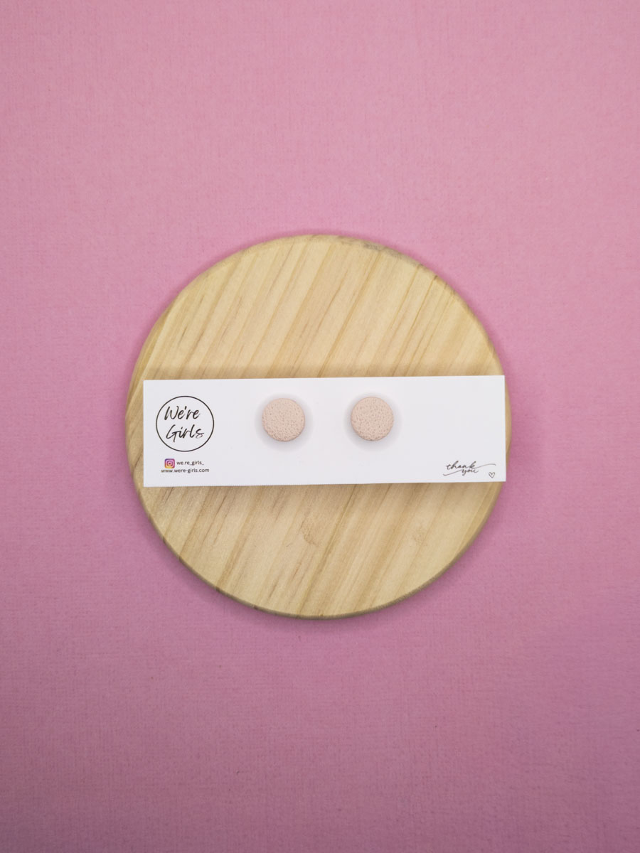 These delightful micro studs in a soft blush hue invite a gentle warmth to your day, with their subtly textured surface whispering of handmade love while effortlessly adding a dash of charm to any outfit, perfect for the playful spirit in every woman over thirty.